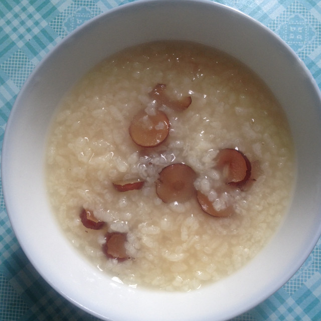 7:合上盖子继续熬煮,煮好之后开盖搅拌就可以吃了。
