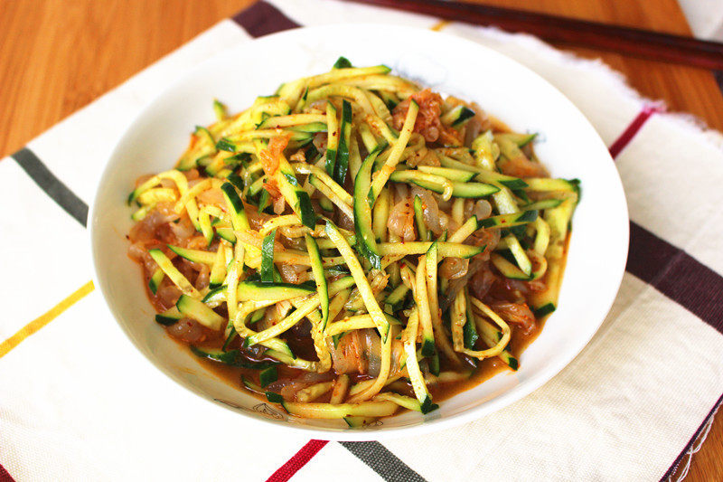 15:把魔芋丝海蜇皮放入黄瓜里。
