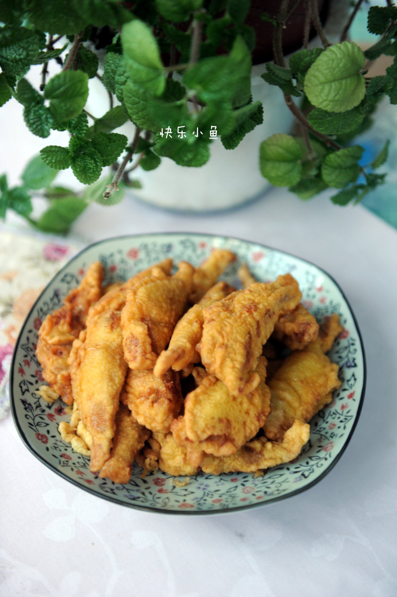 4:将腌好的小鱼放入面糊中,裹均匀即可。