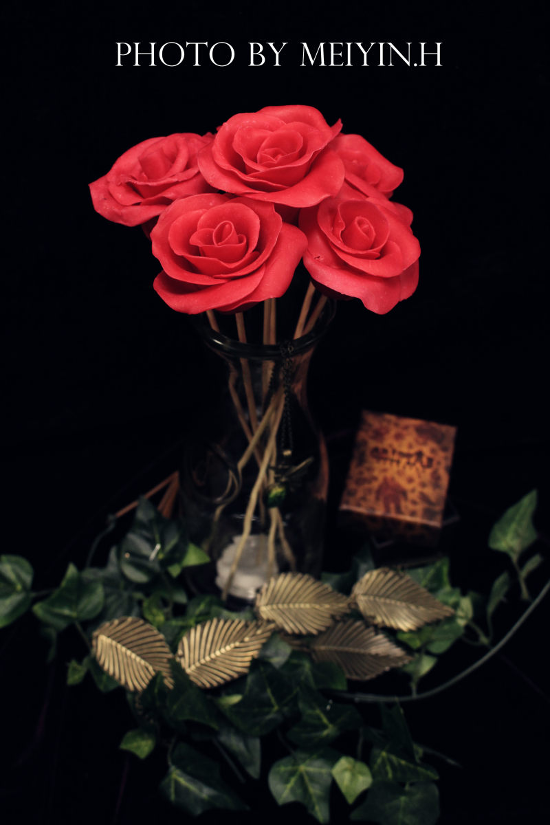 15:烤箱预热180度,放中层烤20分钟,出炉后用竹签从玫瑰花的底插上,然后竖起来,待完全凉透后再进行包装。