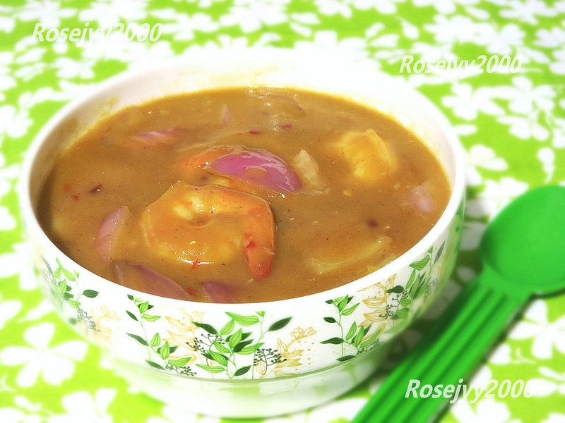 虾仁约15只(中型);大洋葱约1/2个;咖喱块约12克;蒜蓉1/2汤匙;洋葱1/2汤匙;椰奶1/4杯;鸡汤1/2杯;