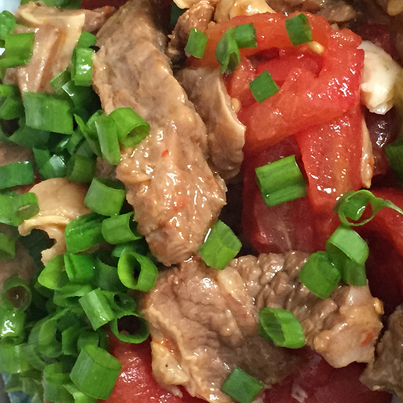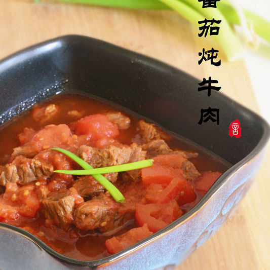 8:待汁浓稠后,加少许味精和盐调味,起锅装盘,撒少许葱花或者香菜末即成。一道清香四溢、咸鲜略带酸甜味的番茄炖牛肉就做好了。