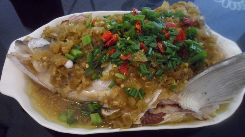 水要烧开后再放入鱼,蒸制时间长短视鱼头大小而定,鱼眼蒸突出,鱼头即熟了。
