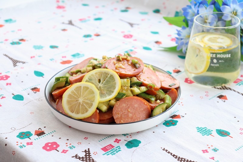 黄瓜1根;火腿肠2根;蒜小半颗;