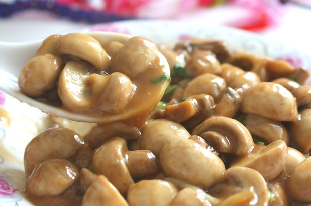 4:蘑菇炒软后放入旧庄蚝油和盐最后淋上水淀粉出锅
