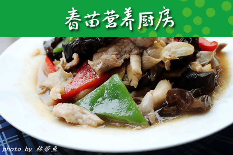 1:准备材料(木耳泡发,菌菇掰成小朵,猪肉切片,青红椒切块,蒜切片)
