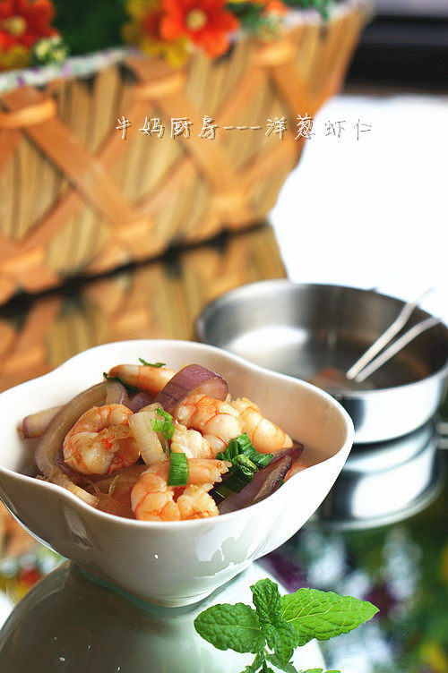 明虾250克;洋葱1个;