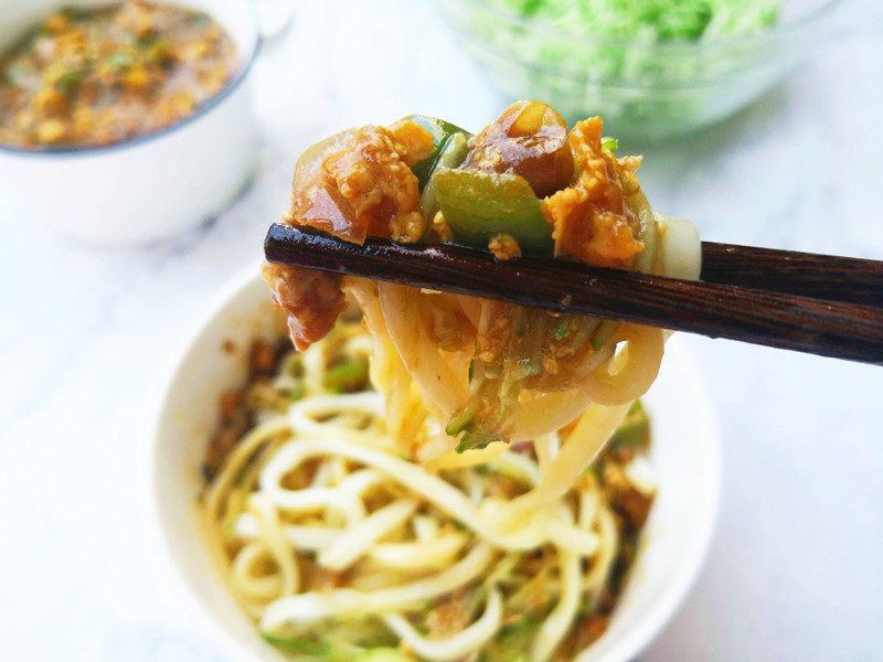 煮好的面条必须过一遍凉水,不粘连不起坨且口感劲道,入口十分爽滑。