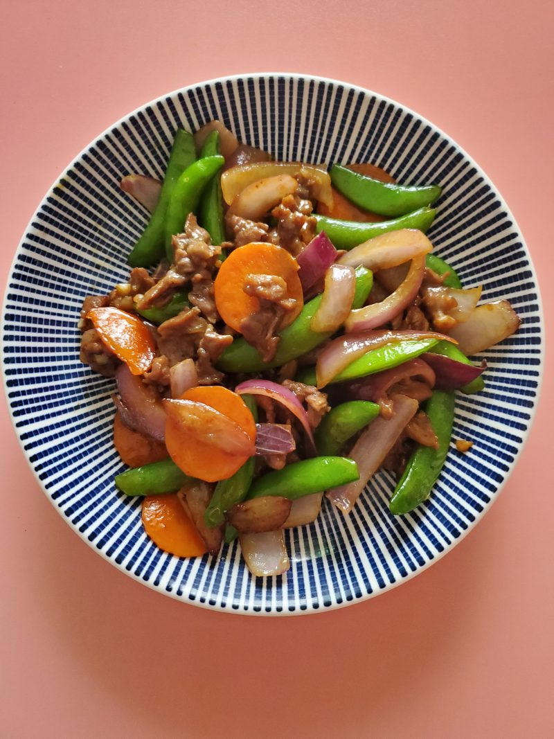 8:甜豆,胡萝卜也下锅炒一下下,调少许盐再炒匀即可