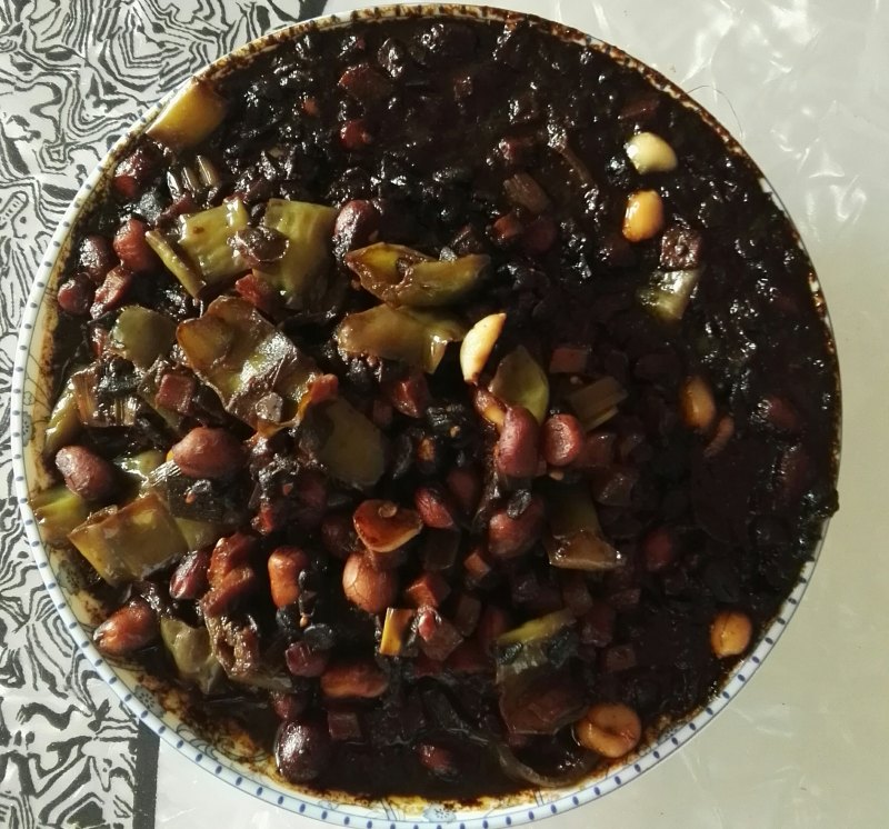3:将萝卜干清洗干净,挤干水分,加黄豆