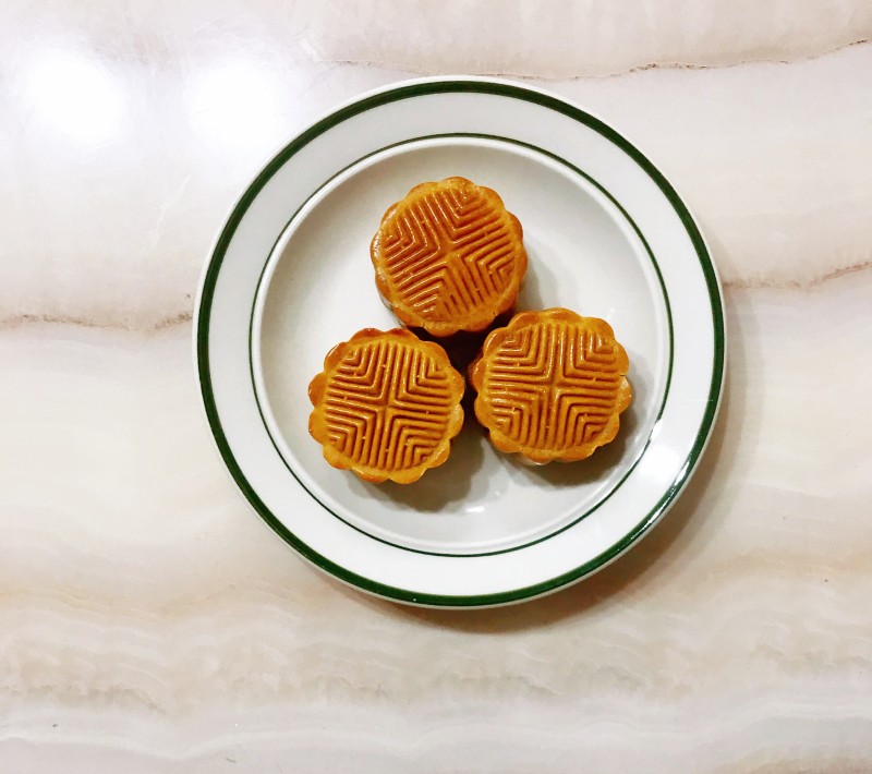 8:皮薄馅丰,色泽金黄油润,外形微鼓,皮馅丰满相贴,花纹玲珑,切口光滑平整。好看好吃的月饼做好了。