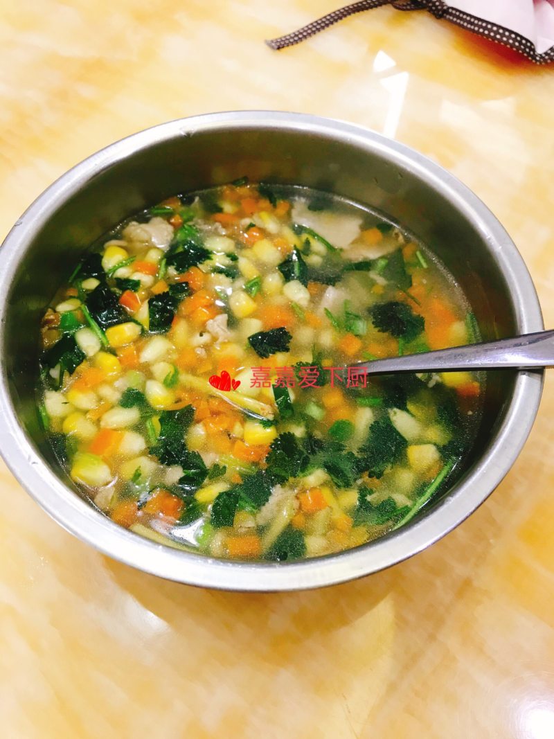 8:胡萝卜软后放入玉米继续煮。