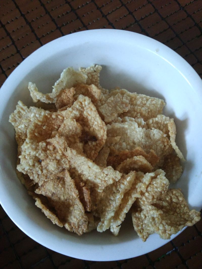 4:然后炸锅巴,买不到锅巴的朋友,不放也一样,这个不是你必须要放的。(这种锅巴的膨胀性比较高,所以脆度高,但是吸水性也比较强。)