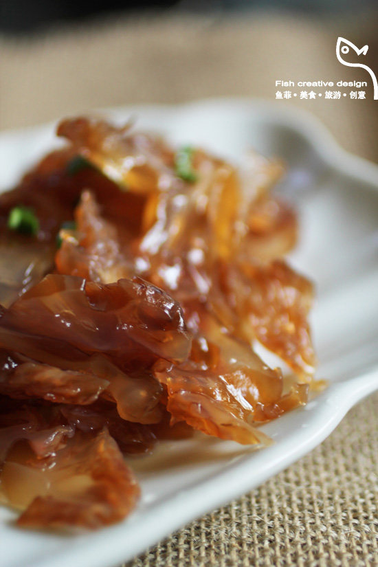 1:海蜇头泡水24小时,12小时换一次水,浸去咸味