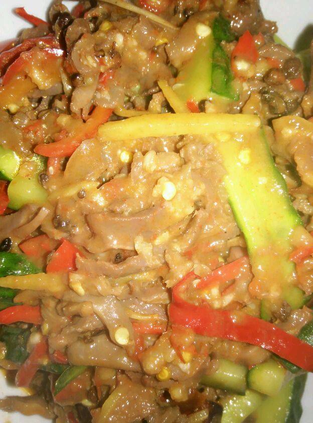8:最后加入黄瓜,红椒,泡椒盖上锅盖焖几分钟即可。