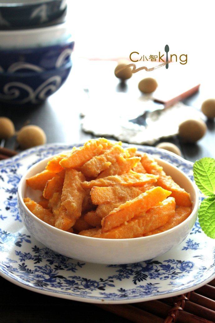 如果用油炸,南瓜表面要撒一层干淀粉。
