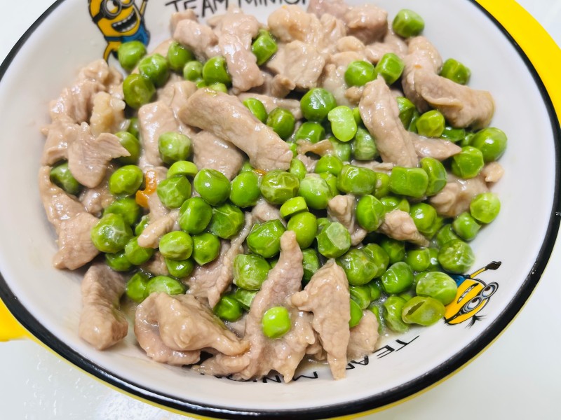 2:锅里加入适量水,倒入豌豆,胡萝卜粒姜丝,加入适量盐,油大火烧开转小火煮两分钟,加入瘦肉划散煮两分钟。