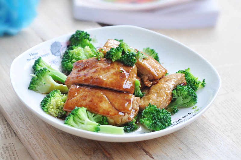 9:把豆腐盛在摆好西兰花的盘子里,上桌啦……
