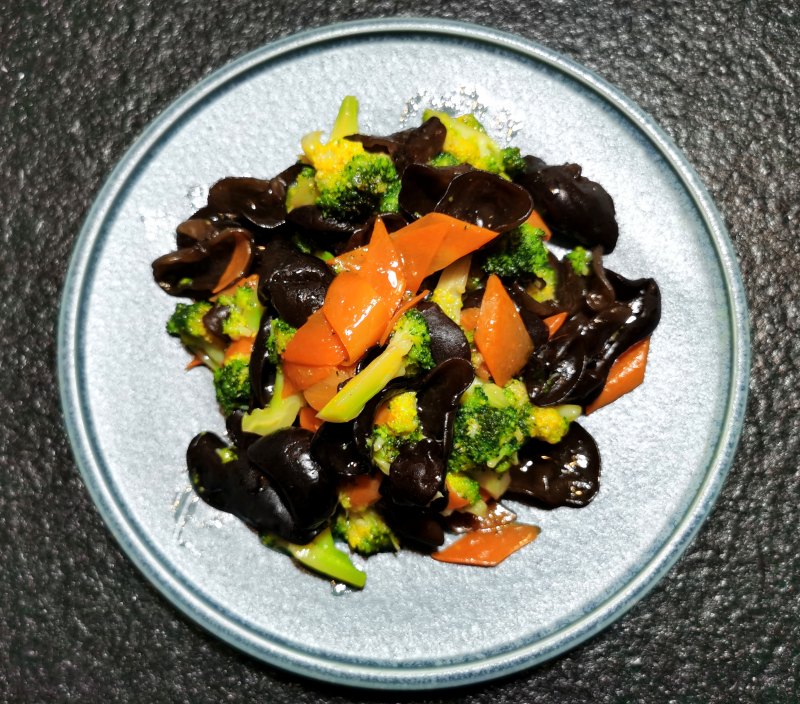 3:西蓝花和木耳一起下锅烫2分钟。