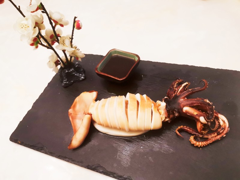 11:切段不切断,配上海鲜酱油和芥末就OK了。