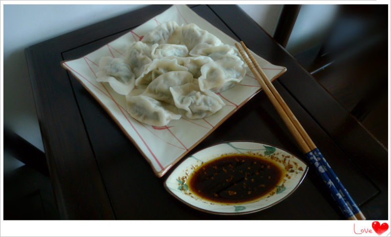 7:包好的饺子,包的时候弄一碗水,每弄一个饺子皮就用手指沾水在饺子皮上抹一圈,否则买的饺子皮不宜粘合在一起。