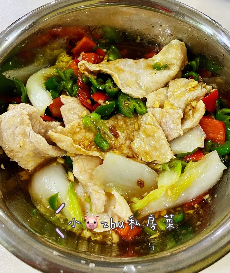 1:我选了两块瘦肉,两个青椒,一个红椒。