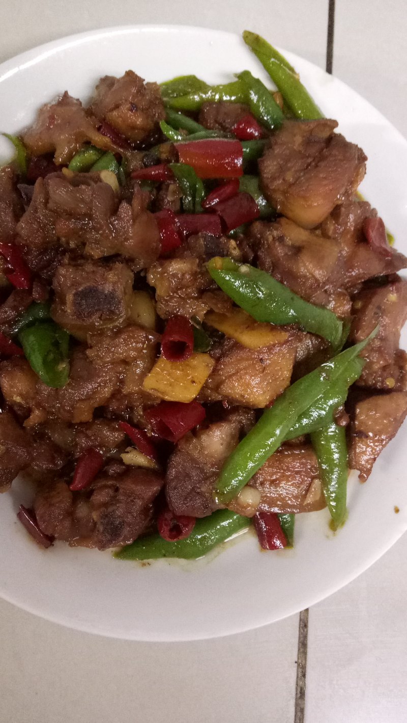 2:起油锅,下姜片,八角,花椒,鸭块一起煸炒至金黄色加辣椒煸炒两分钟!