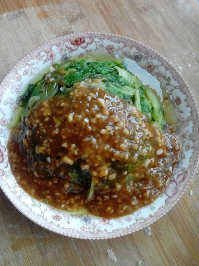 5:均匀浇在烫好的生菜上,即可食用!