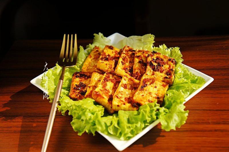 2:将控净水分的的豆腐切片,厚度随自己喜欢的口感而定。