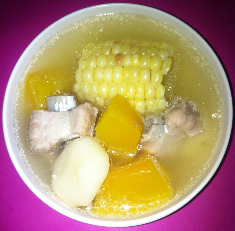 7:加入剩下的南瓜块拌匀即可。可以加盐或糖调味。我觉得南瓜和玉米的原味就很好了~~~~~~