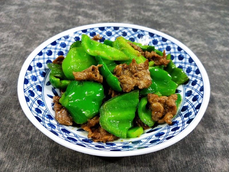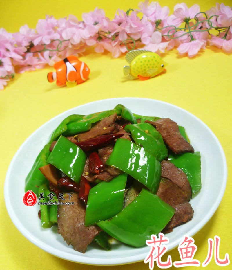 7:青椒加适量盐炒熟后放入牛肉,翻炒均匀即可出锅。