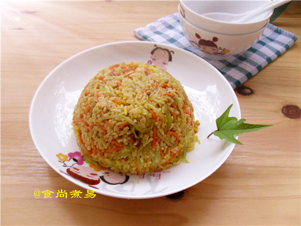 食尚小贴士:莴笋丝不用炒太久,保持少许爽脆口感。咖喱粉放入后炒均匀就可以了,炒久了会糊锅,而且口感变差。炒饭用隔夜饭最好,不粘还能保持清爽的口感。