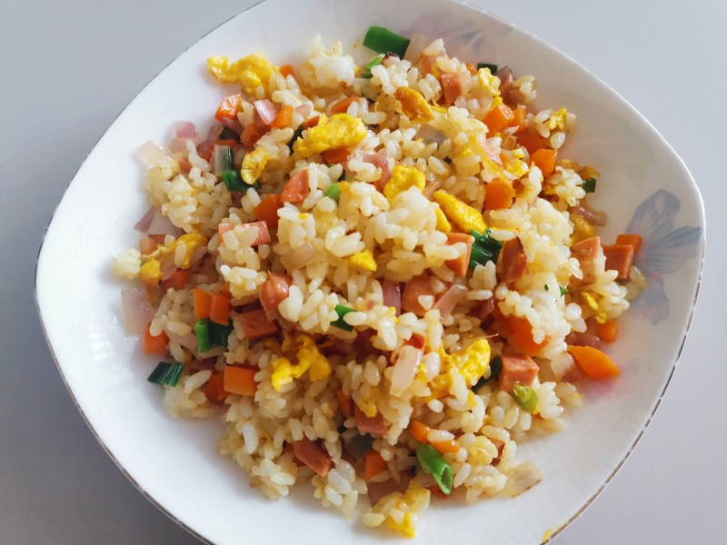 米饭适量;香肠适量;青红椒适量;洋葱适量;葱适量;