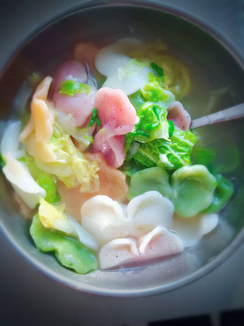 15:加入香油、一点醋、青菜,宝宝就可以吃了。