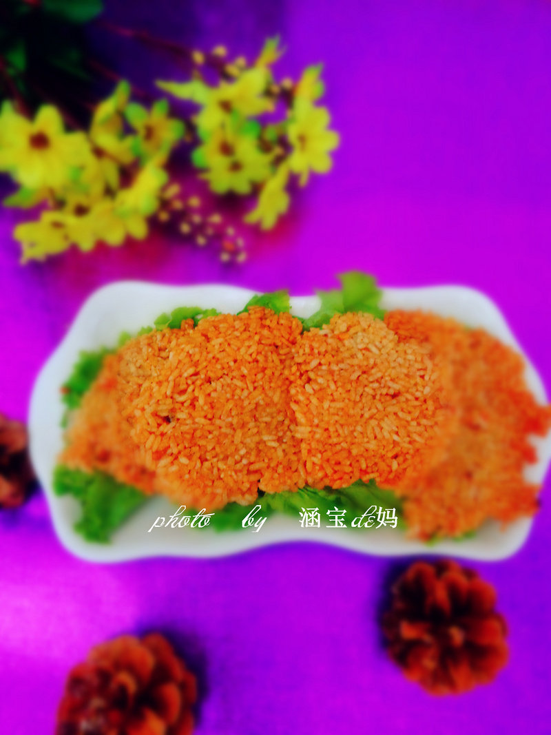 剩米饭小碗;鸡蛋液适量;玉米淀粉适量;白芝麻适量;