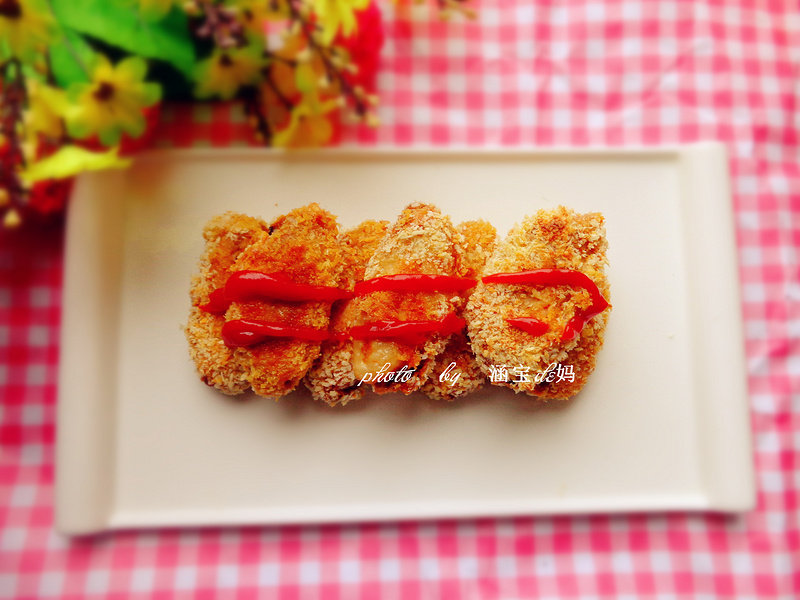 4:鸡蛋打散,准备适量的玉米淀粉和面包糠