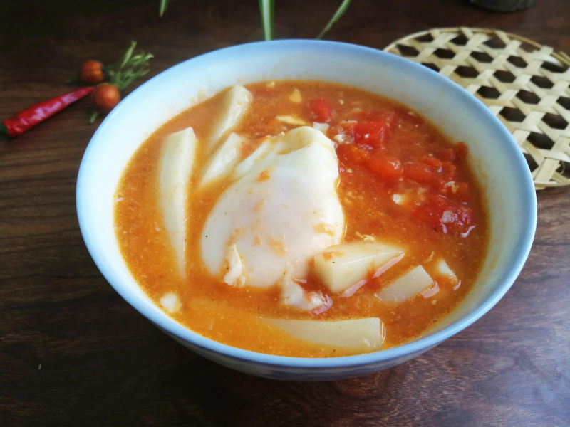 6:温暖鲜美的年糕汤,番茄口味总是让人喜欢。