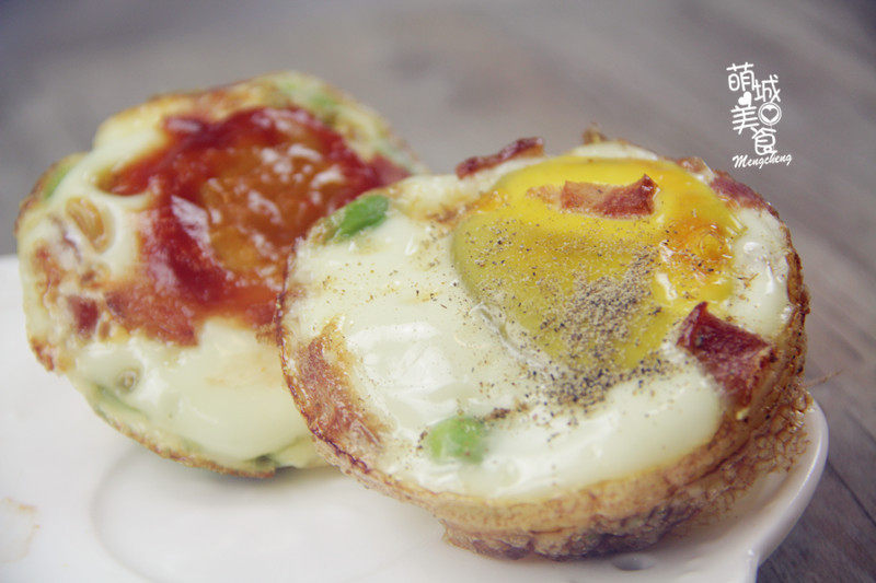 3:把培根剪成想要的大小,放着备用,把鸡蛋放在模具里