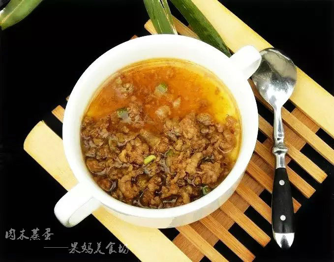 10:把炒好的肉末放在蛋羹上即可食用。
