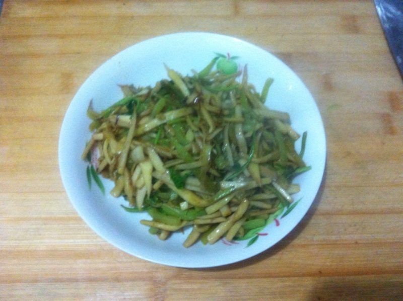 1:食材:杏鲍菇、青红辣椒、蒜苗