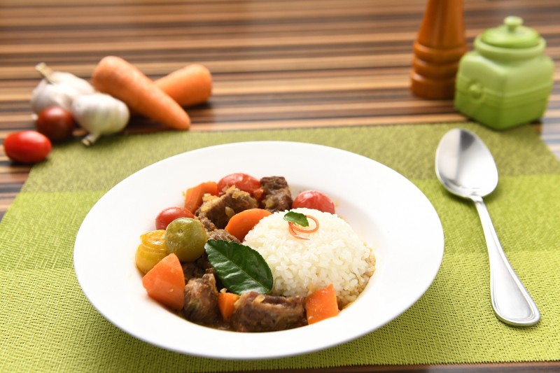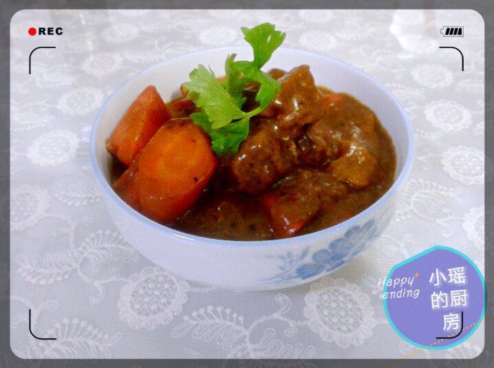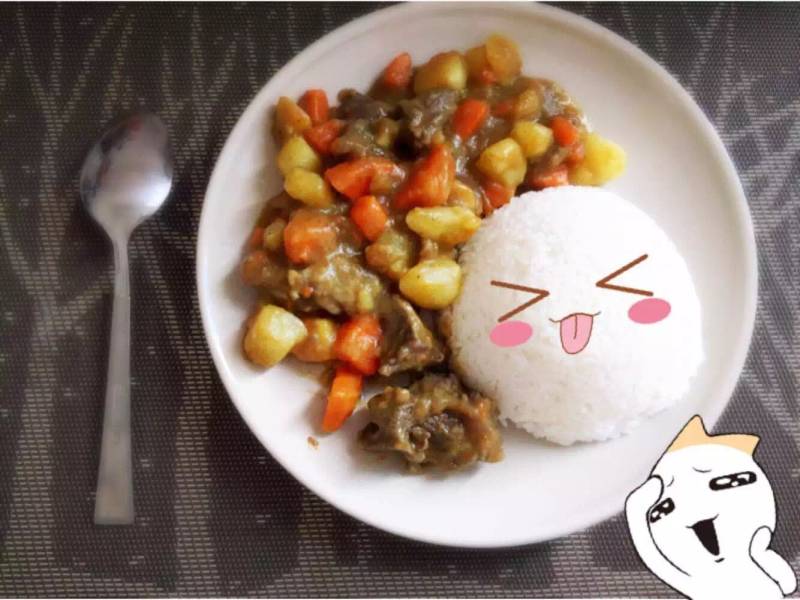 6:将炖好的咖喱牛腩浇在米饭上,咖喱牛腩完成~