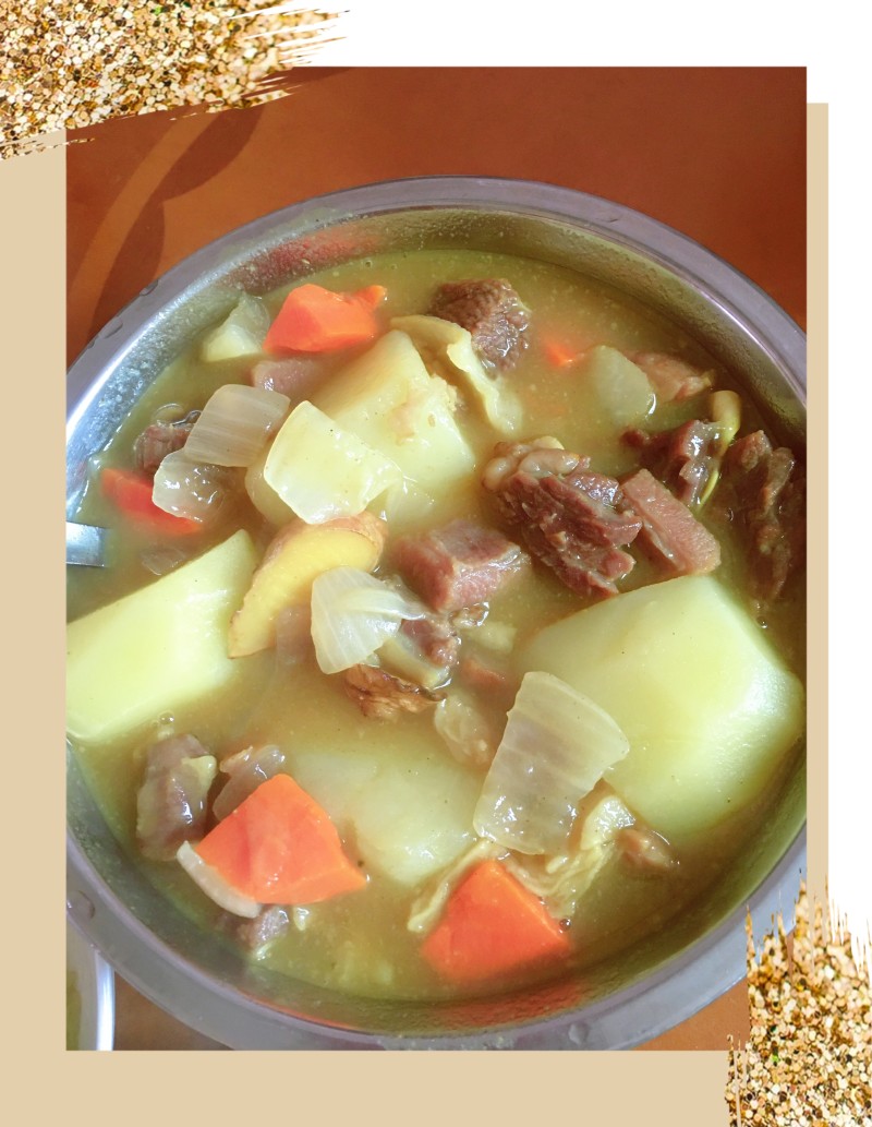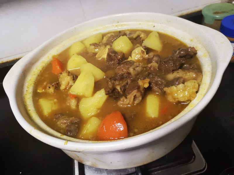 9:大火炖开后加入咖喱,。小火炖至土豆软糯,汤汁浓稠即可