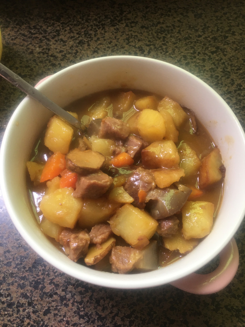 14:煮至咖喱溶化差不多3分钟,大火收汁即可(咖喱本身有咸味,牛腩也有咸味我吃得淡不需再调味)