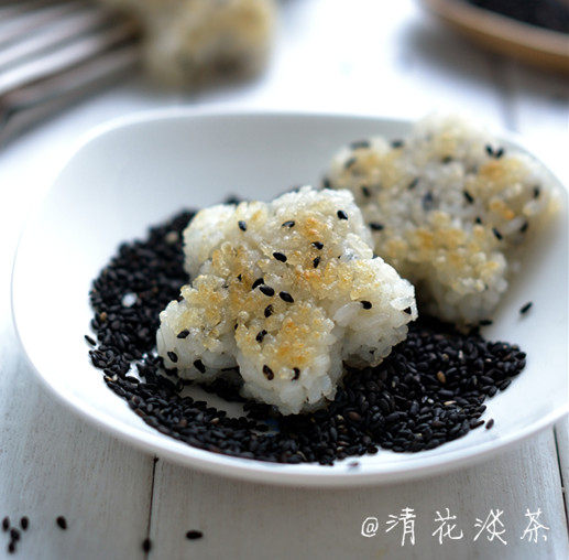 1:食材:糯米粉80克、玉米粉80克、黑芝麻10克、绵白糖35克