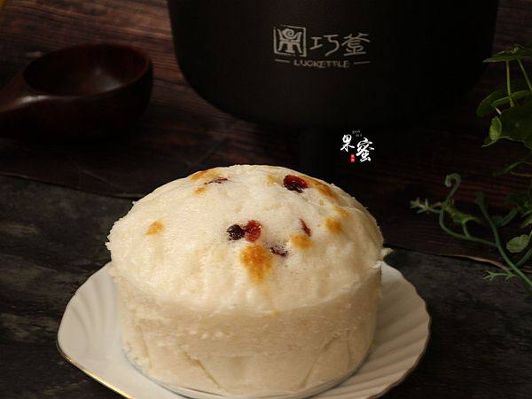 2:买的发糕粉里面已含了糖,不需再加其他调料,只放了些曼越莓干,起点缀作用。