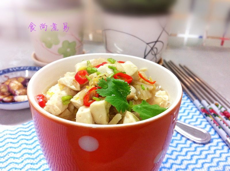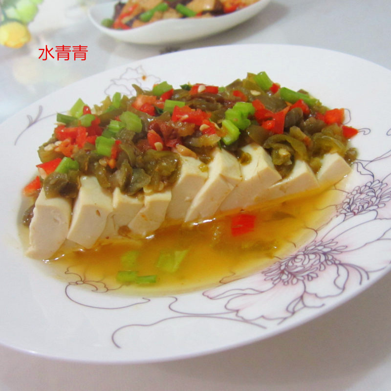 5:倒出腌出的豆腐水,码上酸辣椒,撒上十三香。