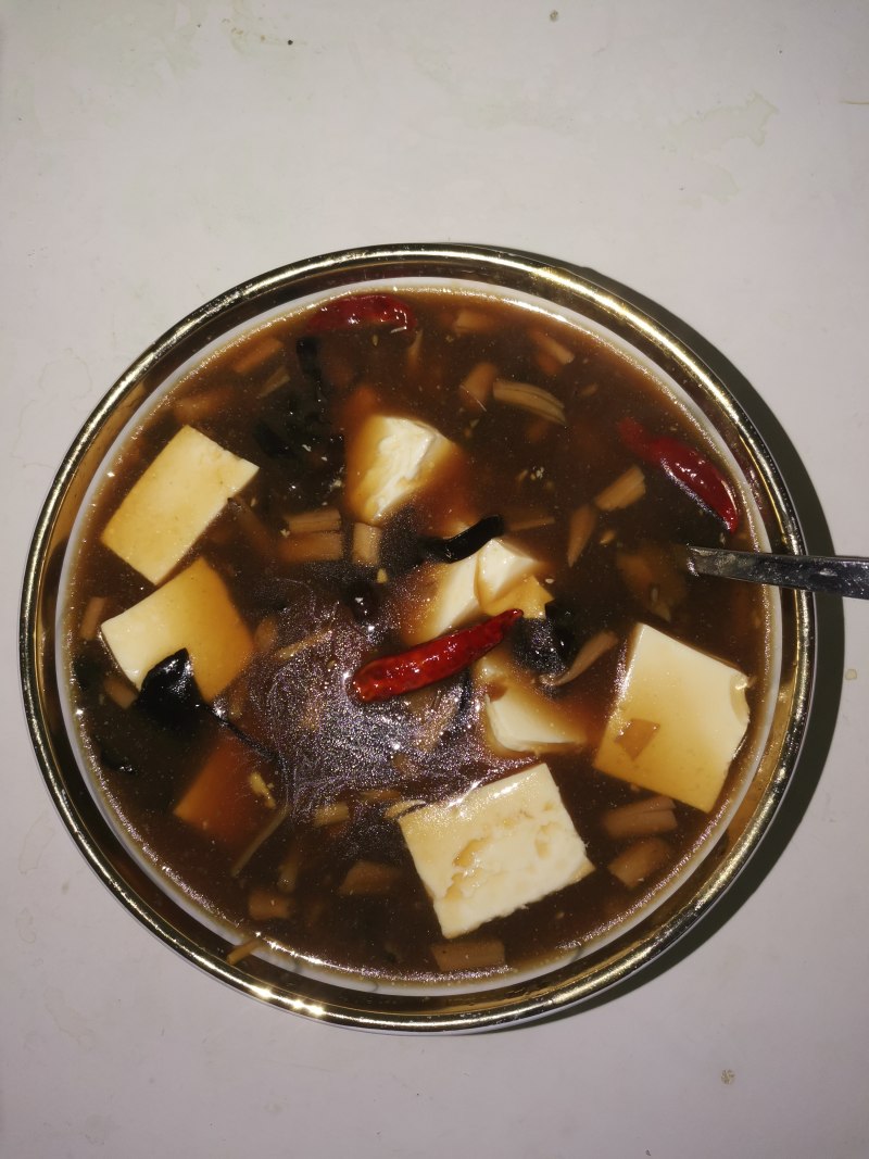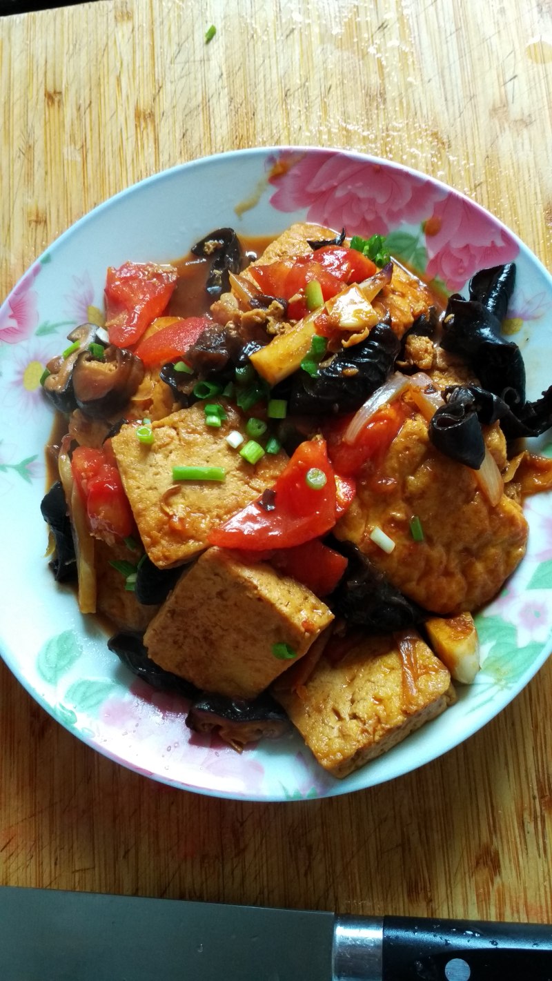 卤水老豆腐250g;西红柿1颗;干香菇若干;干木耳若干;
