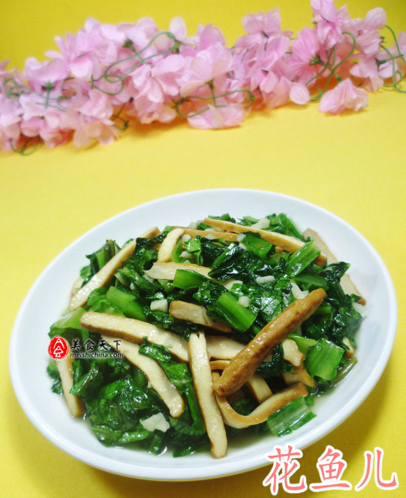 1:炒这道菜调料只有两种:盐和素易鲜。(素易鲜相当于鸡粉,但是专门炒素菜用的,味道很不错)