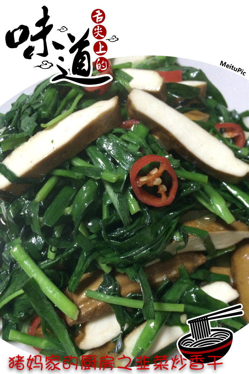 1、香干入锅炒制的过程,淋入半勺生抽可起到上色增香的作用。2、韭菜很容易熟,下锅后用大火翻炒时间不宜过长。