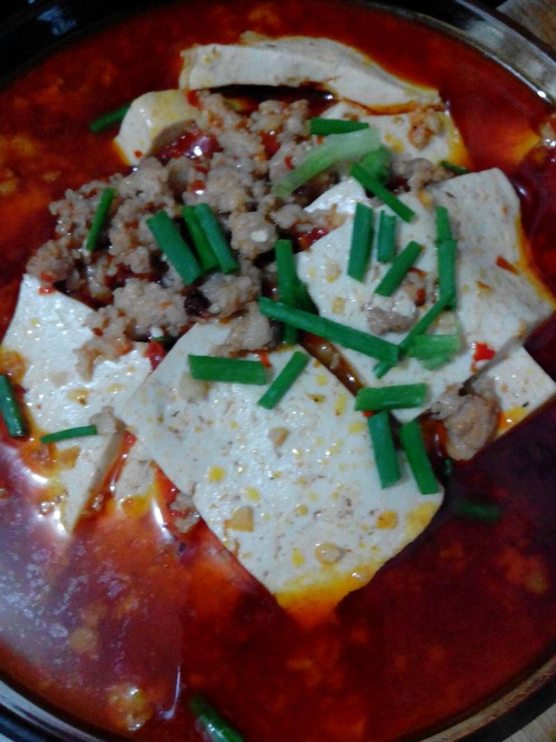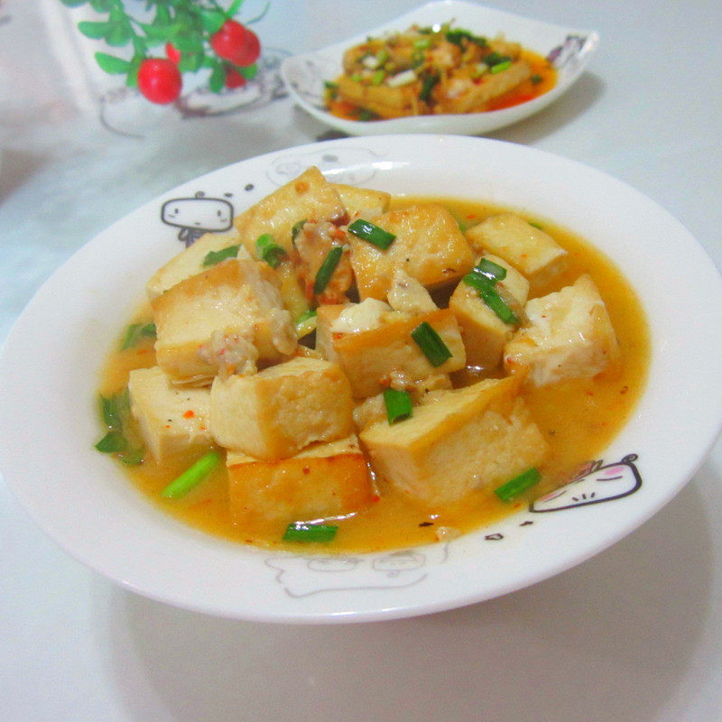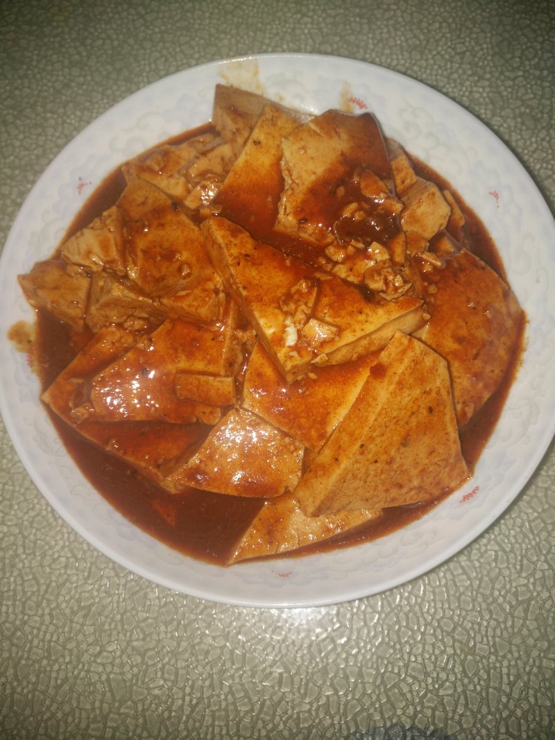 8:多煮一会儿,豆腐才能入味,最后放点鸡精提鲜,来张成品!晚上拍的,灯光不太好